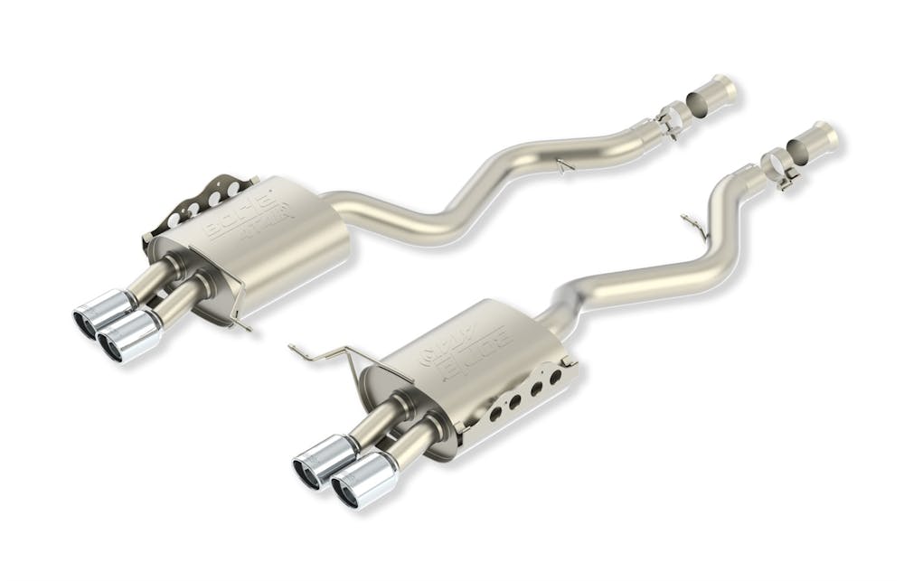 The BMW M3 Sedan really gets enthusiasts? blood fired up by amplifying all the elements the performance-minded driver loves about BMW?s entry-level platform. Of all the cars BMW offers, this is the one they run in competition, and for good reason. But, while the car is a winner, many M3 owners have contacted Borla with considerations about the weight, sound and performance of the stock exhaust setup. Borla has successfully answered the needs of these enthusiasts with a variety of aftermarket offerings. Borla?s custom sound tuning technology delivers the growl level of your choice. The M3 Sedan is enhanced by (PN11770) ?S-Type? Axle-Back system, while (PN 11803) delivers the aggressive Borla ATAK sound. Both systems feature Borla?s famous straight-thru muffler design for added performance; all are constructed of high-quality lightweight T-304 austenitic stainless steel for durability, and all boast aggressive looking dual split rear exhaust with polished T-304 stainless steel tips. From the design characteristics of the inner cores to the amount of sound-absorbing composite filament, all specifications of Borla exhaust systems are tuned on a vehicle-by-vehicle basis for an optimum blend of performance and sound. Combined with an unrivalled Million-Mile Warranty, distinctive motorsport styling, easy bolt-on installation and enhanced fuel economy, the world?s most winning exhaust continues to lead the industry it founded over 40 years ago.