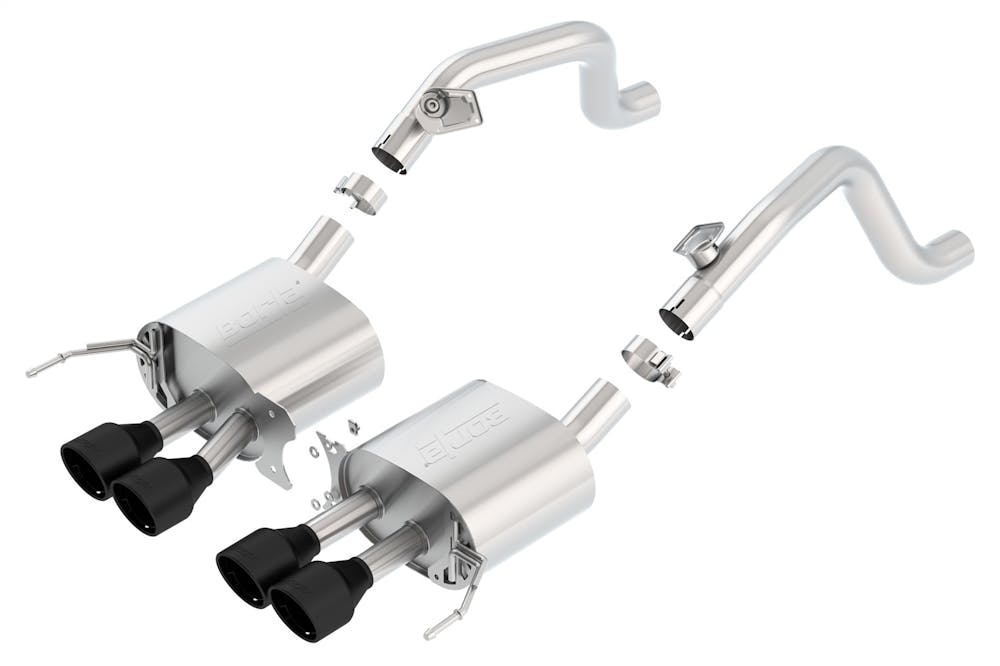 This system does NOT include AFM or NPP valves. It is intended for vehicles that are either not equipped with AFM and NPP or has AFM and NPP disabled. System has non-functioning mounts where AFM actuators can be mounted if the vehicle had them. Features a durable high-temperature ceramic matte black finish on T-304 stainless steel tips. Borla Cat-Back & Axle-Back exhaust systems feature patented straight-through and multi-core technology to unleash hidden horsepower. Increased exhaust velocity adds power, driving excitement, fuel economy, and the distinctive Borla Sound of Power respected by motoring enthusiasts everywhere. Each system is built from premium T-304 austenitic stainless steel, superior to T-400 series knockoffs (such as 409), to give you the absolute best in performance and durability. Ultra-smooth mandrel bends ensure maximum flow & power, and precision computer-controlled CNC manufacturing ensures an accurate fit. Borla’S C7 Corvette Axle-Back exhaust systems are covered under our Million-Mile Warranty for non-moving parts, the exhaust valves are warrantied for 3 years. Failures of original equipment AFM and NPP actuators are not covered by the Borla warranty