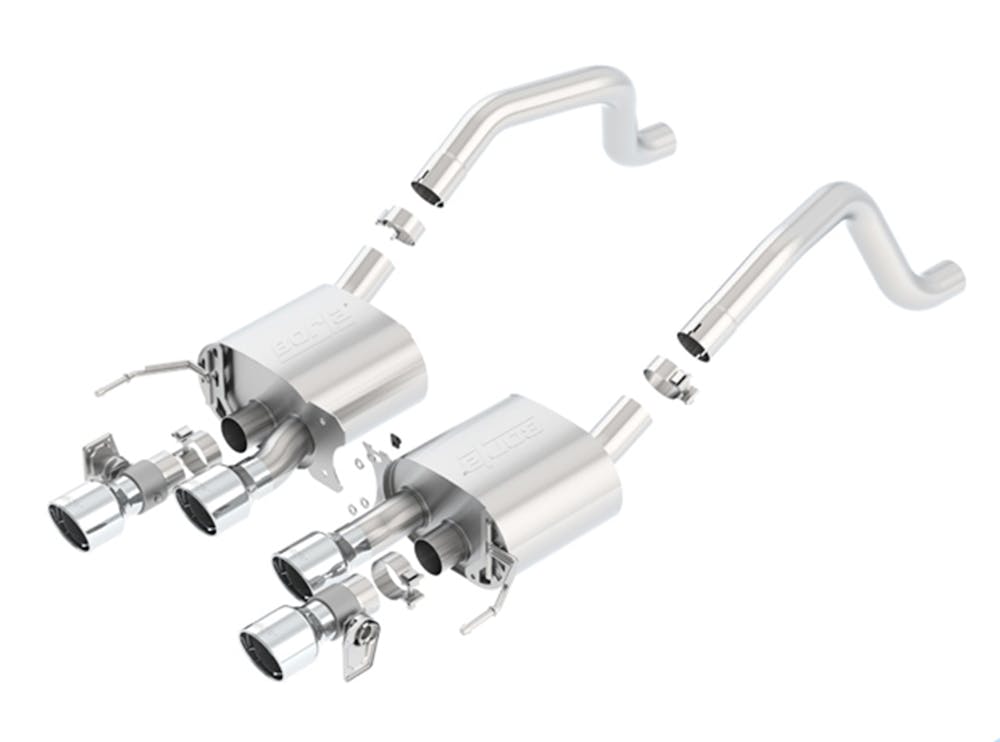 This Axle-Back system does NOT have AFM valves but is equipped with NPP valves. System features polished T-304 stainless steel tips. Optional system are listed below. Borla Cat-Back & Axle-Back exhaust systems feature patented straight-through and multi-core technology to unleash hidden horsepower. Increased exhaust velocity adds power, driving excitement, fuel economy, and the distinctive Borla Sound of Power respected by motoring enthusiasts everywhere. Each system is built from premium T-304 austenitic stainless steel, superior to T-400 series knockoffs (such as 409), to give you the absolute best in performance and durability. Ultra-smooth mandrel bends ensure maximum flow & power, and precision computer-controlled CNC manufacturing ensures an accurate fit. Borla’S C7 Corvette Axle-Back exhaust systems are covered under our Million-Mile Warranty for non-moving parts, the exhaust valves are warrantied for 3 years. Failures of original equipment AFM and NPP actuators are not covered by the Borla warranty