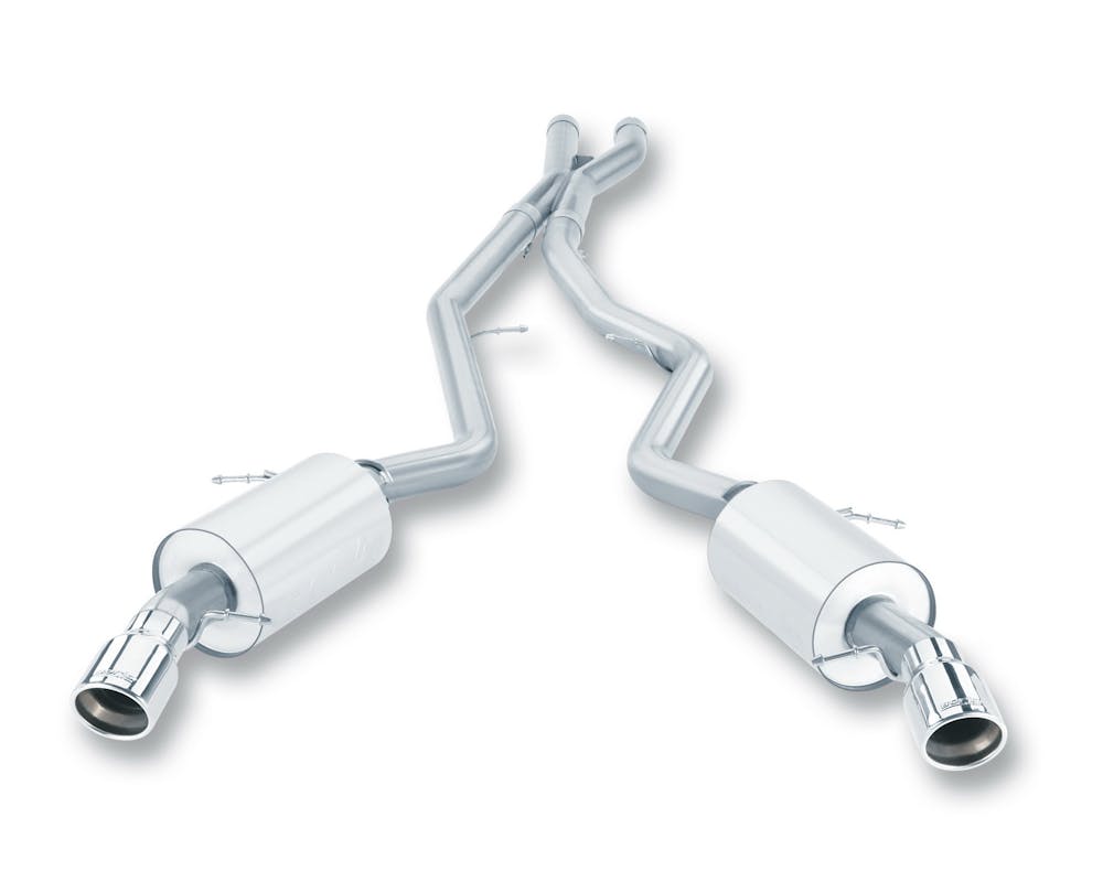 System includes a X-Pipe for increased performance and improved sound. System features polished T-304 stainless steel tips. BORLA(r) Cat-Back(tm) & Axle-Back exhaust systems feature patented straight-through and multi-core technology designed to unleash hidden horsepower. Increased exhaust velocity adds power, driving excitement, fuel economy, and the distinctive BORLA(r) Sound of Power respected by motoring enthusiasts everywhere. Each system is built from premium T-304 stainless steel, superior to T-400 series knockoffs (such as 409), to give you the absolute best in performance and durability. Ultra-smooth mandrel bends ensure maximum flow & power, and precision computer-controlled CNC manufacturing ensures an accurate fit. Best of all, BORLA(r) stands behind every system with a Million-Mile Warranty. Just what you’d expect from the world’s most experienced (and most winning) exhaust brand.