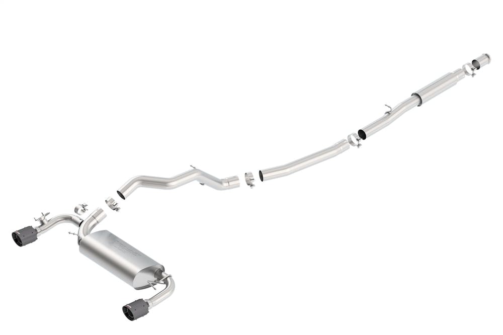 This system is equipped with a Sound Suppressing Valve simulator which ELIMINATES the valve. This avoids any warning lights on the dash while providing maximum flow at all times. This system features carbon fiber tips with black anodized centers. Borla Cat-Back & Axle-Back exhaust systems feature patented straight-through and multi-core technology to unleash hidden horsepower. Increased exhaust velocity adds power, driving excitement, fuel economy, and the distinctive Borla Sound of Power respected by motoring enthusiasts everywhere. Each system is built from premium T-304 austenitic stainless steel, superior to T-400 series knockoffs (such as 409), to give you the absolute best in performance and durability. Ultra-smooth mandrel bends ensure maximum flow & power, and precision computer-controlled CNC manufacturing ensures an accurate fit. Best of all, Borla stands behind every system with a Million-Mile Warranty. Just what you?d expect from the world?s most experienced (and most winning) exhaust brand.