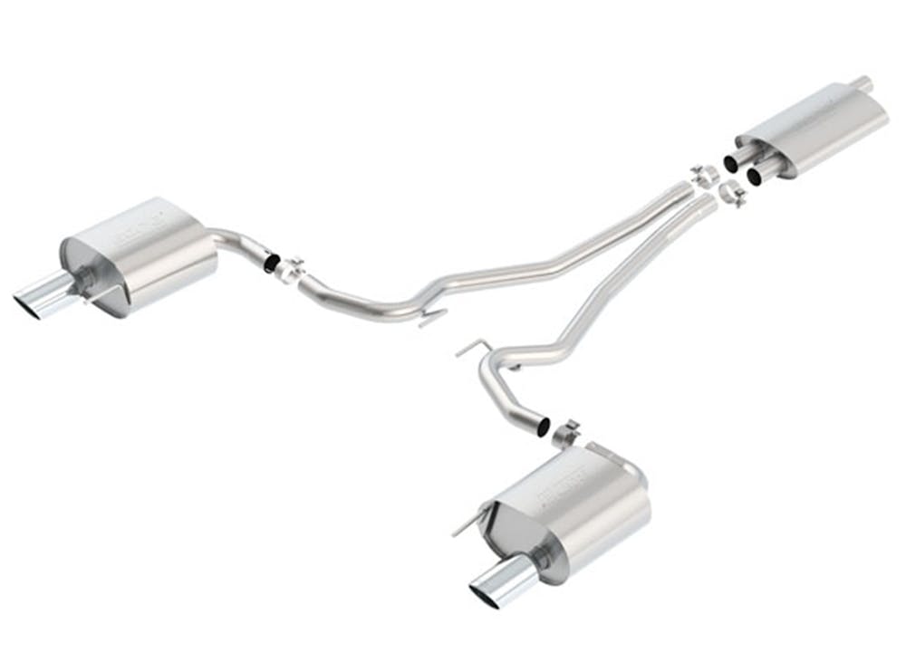 Does NOT fit four tip active valve exhaust vehicles. EC-Type approved systems are those that comply with European Union rules for motor vehicles, vehicle systems and components. This system comes with bright chrome on T-304 stainless steel tips. Borla Cat-Back & Axle-Back exhaust systems feature patented straight-through and multi-core technology designed to unleash hidden horsepower. Increased exhaust velocity adds power, driving excitement, fuel economy, and the distinctive Borla Sound of Power respected by motoring enthusiasts everywhere. Each system is built from premium T-304 stainless steel, superior to T-400 series knockoffs (such as 409), to give you the absolute best in performance and durability. Ultra-smooth mandrel bends ensure maximum flow & power, and precision computer-controlled CNC manufacturing ensures an accurate fit. Best of all, Borla stands behind every system with a Million-Mile Warranty. Just what you?d expect from the world?s most experienced (and most winning) exhaust brand.
