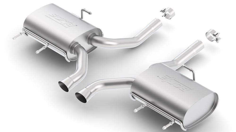Tips NOT included. Use factory, bezel, valance, tips. Borla Cat-Back & Axle-back exhaust systems feature patented straight-through and multi-core technology designed to unleash hidden horsepower. Increased exhaust velocity adds power, driving excitement, fuel economy, and the distinctive Borla Sound of Power respected by motoring enthusiasts everywhere. Each system is built from premium T-304 stainless steel, superior to T-400 series knockoffs (such as 409), to give you the absolute best in performance and durability. Ultra-smooth mandrel bends ensure maximum flow & power, and precision computer-controlled CNC manufacturing ensures an accurate fit. Best of all, Borla stands behind every system with a Million-Mile Warranty. Just what you?d expect from the world?s most experienced (and most winning) exhaust brand.