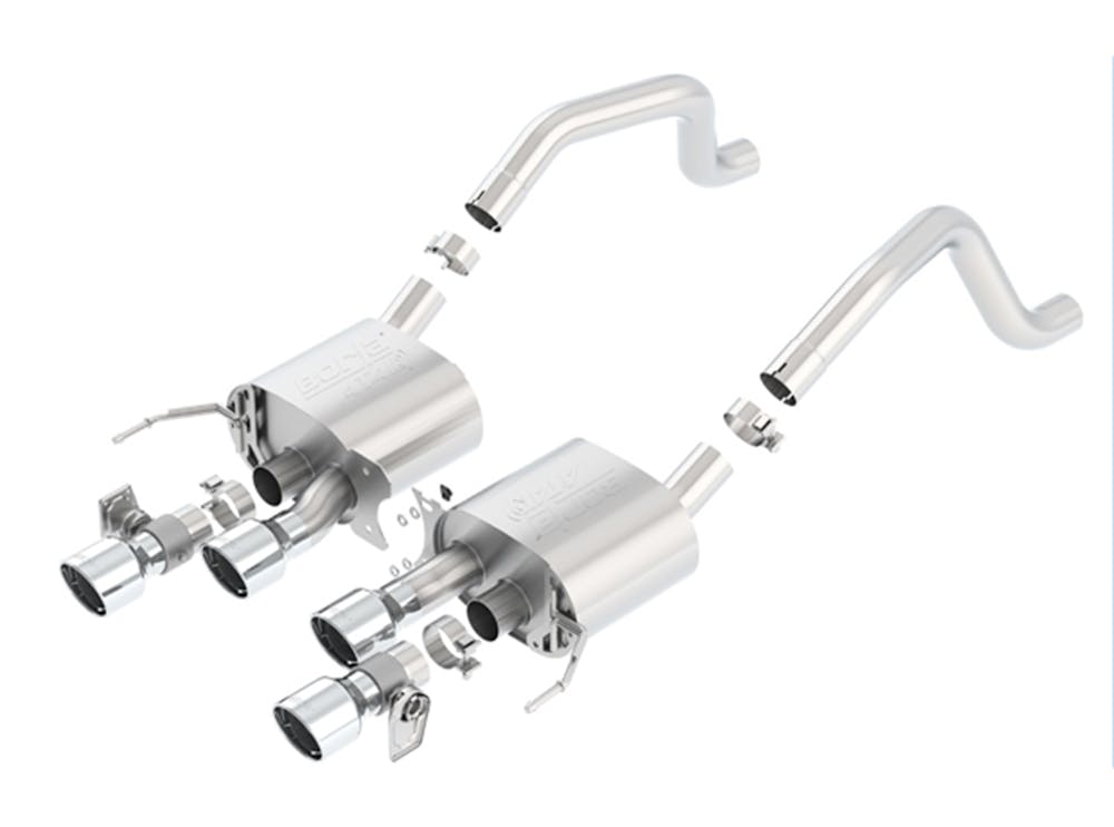 This Axle-Back system does NOT have AFM valves but is equipped with NPP valves. Optional system are listed below. Borla Cat-Back & Axle-Back exhaust systems feature patented straight-through and multi-core technology to unleash hidden horsepower. Increased exhaust velocity adds power, driving excitement, fuel economy, and the distinctive Borla Sound of Power respected by motoring enthusiasts everywhere. Each system is built from premium T-304 austenitic stainless steel, superior to T-400 series knockoffs (such as 409), to give you the absolute best in performance and durability. Ultra-smooth mandrel bends ensure maximum flow & power, and precision computer-controlled CNC manufacturing ensures an accurate fit. Borla’S C7 Corvette Axle-Back exhaust systems are covered under our Million-Mile Warranty for non-moving parts, the exhaust valves are warrantied for 3 years. Failures of original equipment AFM and NPP actuators are not covered by the Borla warranty