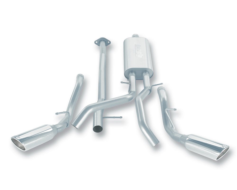 Features bright chrome on T-304 stainless steel tips. Borla Cat-Back & Axle-Back exhaust systems feature patented straight-through and multi-core technology to unleash hidden horsepower. Increased exhaust velocity adds power, driving excitement, fuel economy, and the distinctive Borla Sound of Power respected by motoring enthusiasts everywhere. Each system is built from premium T-304 austenitic stainless steel, superior to T-400 series knockoffs (such as 409), to give you the absolute best in performance and durability. Ultra-smooth mandrel bends ensure maximum flow & power, and precision computer-controlled CNC manufacturing ensures an accurate fit. Best of all, Borla stands behind every system with a Million-Mile Warranty. Just what you?d expect from the world?s most experienced (and most winning) exhaust brand.