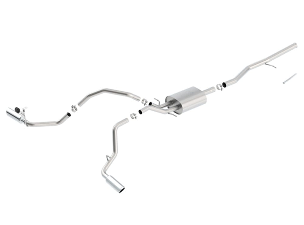 Features bright chrome on T-304 stainless steel tips. Borla Cat-Back & Axle-Back multi-core technology is designed to unleash hidden horsepower. Increased exhaust velocity adds power, driving excitement, fuel economy, and the distinctive Borla Sound of Power respected by motoring enthusiasts everywhere. Each system is built from premium T-304 stainless steel, superior to T-400 series knockoffs (such as 409), to give you the absolute best in performance and durability. Ultra-smooth mandrel bends ensure maximum flow & power, and precision computer-controlled CNC manufacturing ensures an accurate fit. Best of all, Borla stands behind every system with a Million-Mile Warranty. Just what you?d expect from the world?s most experienced (and most winning) exhaust brand.
