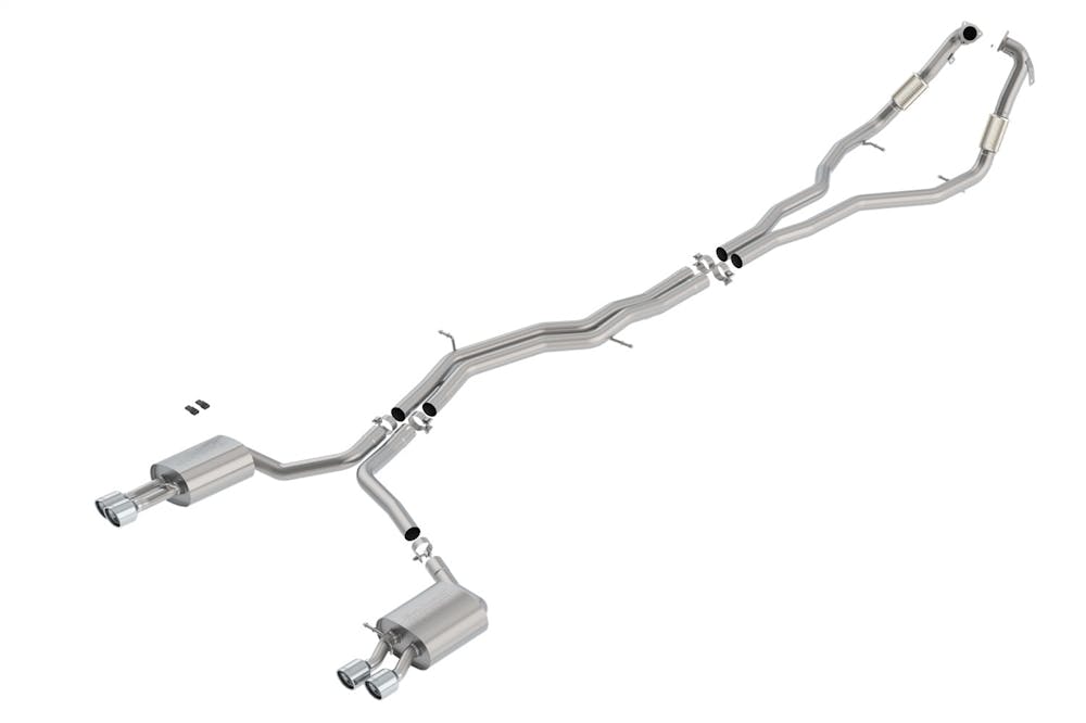 System features a merge X-Pipe for increased performance and improved sound. System includes electronic exhaust valve simulators which ELIMINATE the valves. This avoids any warning lights on the dash while providing maximum flow at all times. System features polished T-304 stainless steel tips. BORLA(r) Cat-Back(tm) & Axle-Back exhaust systems feature patented straight-through and multi-core technology to unleash hidden horsepower. Increased exhaust velocity adds power, driving excitement, fuel economy, and the distinctive BORLA(r) Sound of Power respected by motoring enthusiasts everywhere. Each system is built from premium, high-quality T-304 austenitic stainless steel, superior to T-400 series knockoffs (such as 409), to give you the absolute best in performance and durability. Ultra-smooth mandrel bends ensure maximum flow & power, and precision computer-controlled CNC manufacturing ensures an accurate fit. Best of all, BORLA(r) stands behind every system with a Million-Mile Warranty. Just what you’d expect from the world’s most experienced (and most winning) exhaust brand.