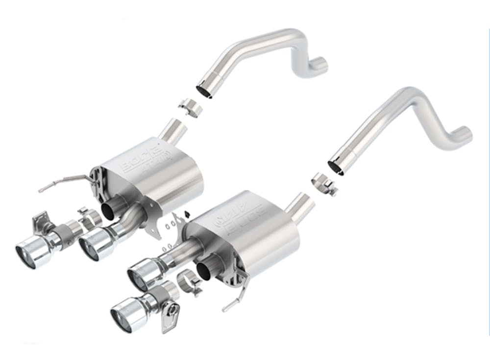 This Axle-Back system doe NOT have AFM valves but is equipped with NPP valves. System features polished T-304 stainless steel tips. Optional system are listed below. Borla Cat-Back & Axle-Back exhaust systems feature patented straight-through and multi-core technology to unleash hidden horsepower. Increased exhaust velocity adds power, driving excitement, fuel economy, and the distinctive Borla Sound of Power respected by motoring enthusiasts everywhere. Each system is built from premium T-304 austenitic stainless steel, superior to T-400 series knockoffs (such as 409), to give you the absolute best in performance and durability. Ultra-smooth mandrel bends ensure maximum flow & power, and precision computer-controlled CNC manufacturing ensures an accurate fit. Borla’S C7 Corvette Axle-Back exhaust systems are covered under our Million-Mile Warranty for non-moving parts, the exhaust valves are warrantied for 3 years. Failures of original equipment AFM and NPP actuators are not covered by the Borla warranty