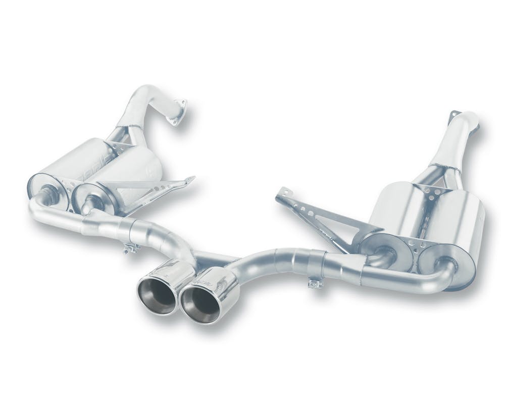 The BORLA(R) sound of power. Its been described as asonic shot of adrenaline. An intoxicating concert ofsteel, gears and combustion that echoes from thespeedways, deserts and highways of the world.The sound of more victory laps than any otherbrand, the BORLA(R) exhaust note has become the quintessentioal soundtrack of high-performance motoring. And like all good automotive designs there is function behing the form. As any driving enthusiast knows, the sound of an exhaust provides more than just ear candy. Its a communications conduit between car and driver. A link between human and machine. The exhaust sound provides accoustic feedback of engine rpm to aid the driver in critical decisions such as gear selection or throttle input in rev-match shifting. At BORLA(R), we understand this concept better than any exhaust manufacturer. Combining patented technology with computer modeling, extensive prototyping and advanced sound analysis tools. BORLA(R) engineers spend countless hours tuning exhaust systems to best reflect the personality and performance of vehicle applications. The result is an enhanced driving experience. With unrivaled clarity, the BORLA(R) exhaust note can help a driver stay within the powerband through a difficult section, using the exciting sensory feedback of sound. With unrivaled clarity the Borla exhaust note can help a driver stay within the powerband through a difficult section, using the exciting sensry feedback of sound.