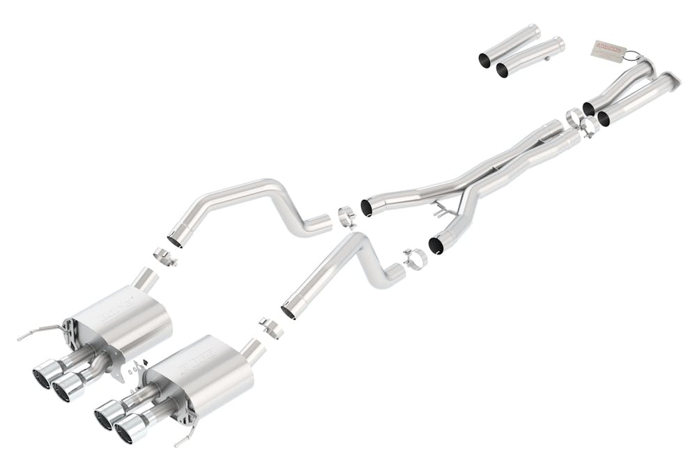 The BORLA(R) sound of power. Its been described as asonic shot of adrenaline. An intoxicating concert ofsteel, gears and combustion that echoes from thespeedways, deserts and highways of the world.The sound of more victory laps than any otherbrand, the BORLA(R) exhaust note has become the quintessentioal soundtrack of high-performance motoring. And like all good automotive designs there is function behing the form. As any driving enthusiast knows, the sound of an exhaust provides more than just ear candy. Its a communications conduit between car and driver. A link between human and machine. The exhaust sound provides accoustic feedback of engine rpm to aid the driver in critical decisions such as gear selection or throttle input in rev-match shifting. At BORLA(R), we understand this concept better than any exhaust manufacturer. Combining patented technology with computer modeling, extensive prototyping and advanced sound analysis tools. BORLA(R) engineers spend countless hours tuning exhaust systems to best reflect the personality and performance of vehicle applications. The result is an enhanced driving experience. With unrivaled clarity, the BORLA(R) exhaust note can help a driver stay within the powerband through a difficult section, using the exciting sensory feedback of sound. With unrivaled clarity the Borla exhaust note can help a driver stay within the powerband through a difficult section, using the exciting sensry feedback of sound.
