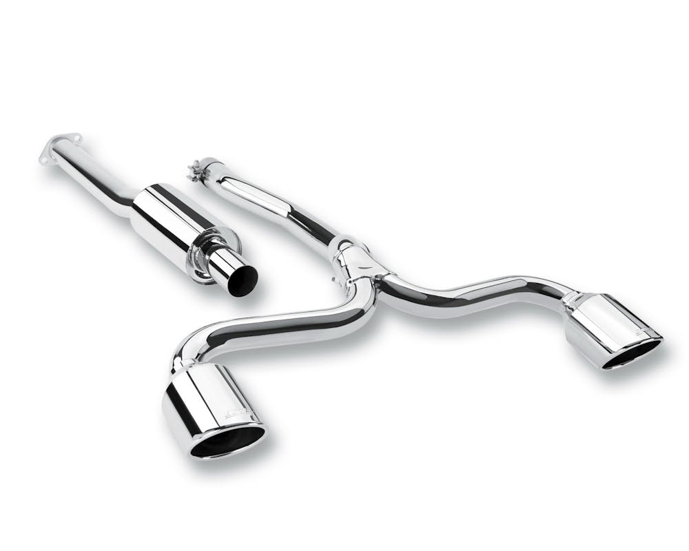 Borla Performance has been manufacturing clever Cat-Back and Header systems for the Mitsubishi Evo since its inception. Borla is proud of it’s dynamite, dual exit package that develops impressive double-digit horsepower while weighing less than half the factory system. Borla manages this with a unique muffler, smooth mandrel bends and large 2-?? tubing. This awesome Borla Evo system (PN 140285) has an aggressive sound and is capped off with one large 5? bright chrome on T-304 stainless steel round angle-cut exhaust tip on each side of the vehicle?s rear. Borla, the original pioneers of high-quality, T-304 austenitic stainless steel (superior to 409 or aluminized steel) free-flow exhaust utilizes patented award and race winning technology to deliver quality, sound, performance gains and enhanced fuel economy ? all with an easy bolt-on installation. All street systems are back with an unsurpassed written million-mile warranty.
