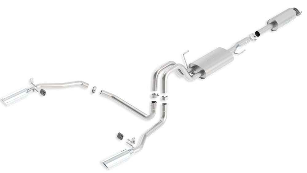 Features bright chrome on T-304 stainless steel tips.System can also be used on Crew Cab Standard Bed (78.8) vehicles but requires 60554 Adapter. Borla Cat-Back & Axle-Back exhaust systems feature patented straight-through and multi-core technology designed to unleash hidden horsepower. Increased exhaust velocity adds power, driving excitement, fuel economy, and the distinctive Borla Sound of Power respected by motoring enthusiasts everywhere. Each system is built from premium T-304 stainless steel, superior to T-400 series knockoffs (such as 409), to give you the absolute best in performance and durability. Ultra-smooth mandrel bends ensure maximum flow & power, and precision computer-controlled CNC manufacturing ensures an accurate fit. Best of all, Borla stands behind every system with a Million-Mile Warranty. Just what you?d expect from the world?s most experienced (and most winning) exhaust brand.