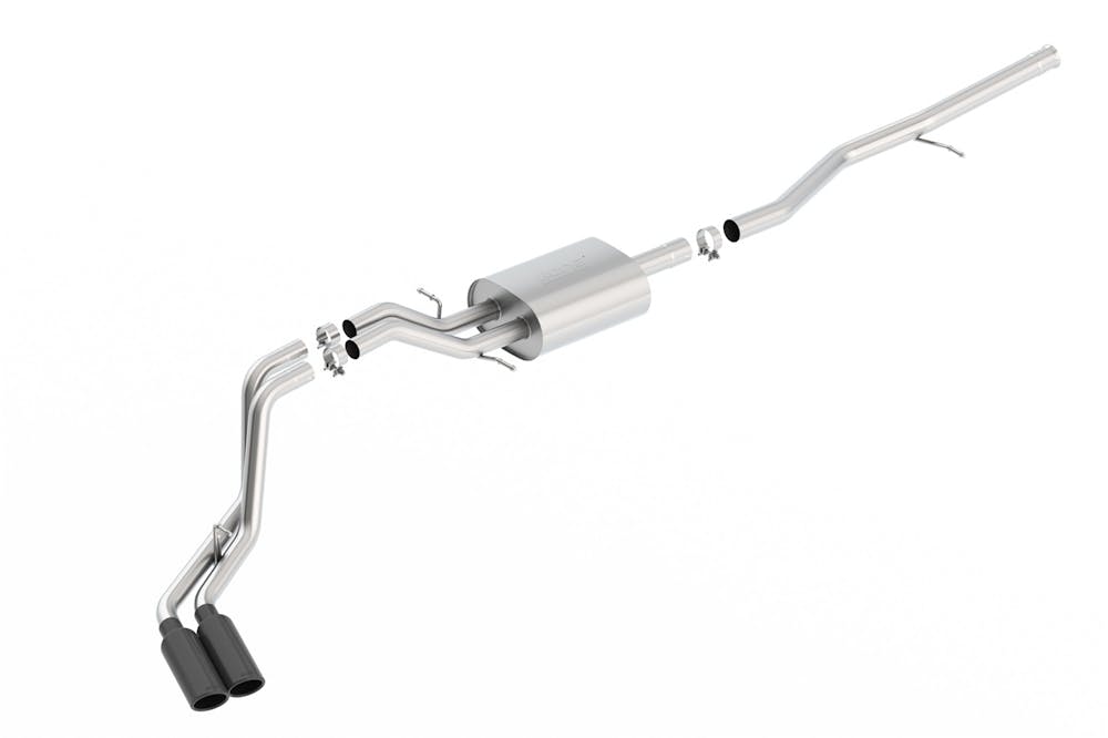 This system features a black chrome finish on T-304 stainless steel tips. Using BORLA(r) Stainless Steel Polish p# 21461 is NOT recommended with these black chrome tips. We suggest cleaning the tips with hot water and a microfiber cloth. BORLA(r) Cat-Back(tm) and Axle-Back exhaust systems feature patented straight-through and multi-core technology designed to unleash hidden horsepower. Increased exhaust velocity adds power, driving excitement, fuel economy, and the distinctive BORLA(r) Sound of Power respected by motoring enthusiasts everywhere. Each system is built from premium T-304 stainless steel, superior to T-400 series knockoffs (such as 409), to give you the absolute best in performance and durability. Ultra-smooth mandrel bends ensure maximum flow& power, and precision computer-controlled CNC manufacturing ensures an accurate fit. Best of all, BORLA(r) stands behind every system with a Million-Mile Warranty. Just what you’d expect from the world’s most experienced (and most winning) exhaust brand.
