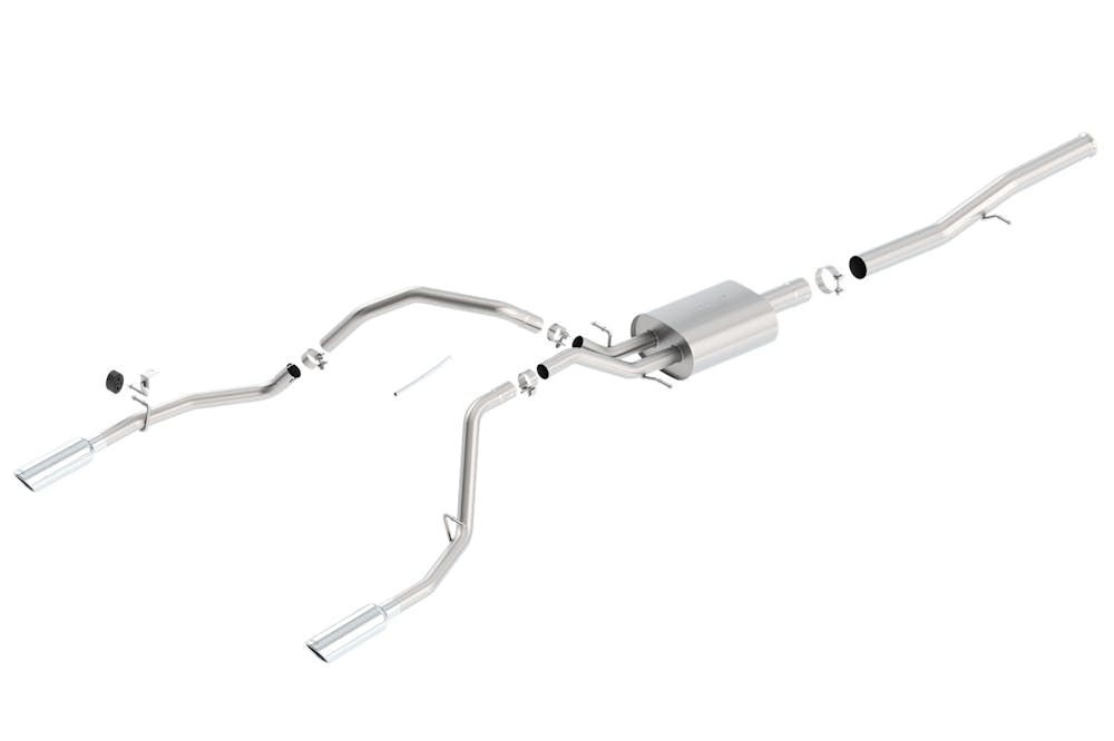 Features bright chrome on T-304 stainless steel tips. Borla Cat-Back & Axle-Back exhaust systems feature patented straight-through and multi-core technology designed to unleash hidden horsepower. Increased exhaust velocity adds power, driving excitement, fuel economy, and the distinctive Borla Sound of Power respected by motoring enthusiasts everywhere. Each system is built from premium T-304 stainless steel, superior to T-400 series knockoffs (such as 409), to give you the absolute best in performance and durability. Ultra-smooth mandrel bends ensure maximum flow & power, and precision computer-controlled CNC manufacturing ensures an accurate fit. Best of all, Borla stands behind every system with a Million-Mile Warranty. Just what you?d expect from the world?s most experienced (and most winning) exhaust brand.