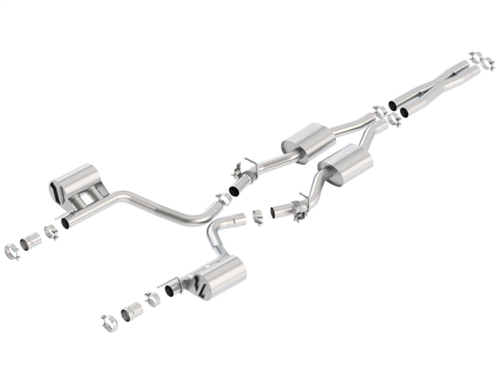 This system includes functioning MDS (multi-displacement system) valves. System features a X-Pipe for improved performance. Tips NOT included use factory bezel/ valance. Borla Cat-Back & Axle-Back exhaust systems feature patented straight-through and multi-core technology to unleash hidden horsepower. Increased exhaust velocity adds power, driving excitement, fuel economy, and the distinctive Borla Sound of Power respected by motoring enthusiasts everywhere. Each system is built from premium T-304 austenitic stainless steel, superior to T-400 series knockoffs (such as 409), to give you the absolute best in performance and durability. Ultra-smooth mandrel bends ensure maximum flow & power, and precision computer-controlled CNC manufacturing ensures an accurate fit Best of all, Borla stands behind every system with a Million-Mile Warranty. Just what you?d expect from the world?s most experienced (and most winning) exhaust brand.