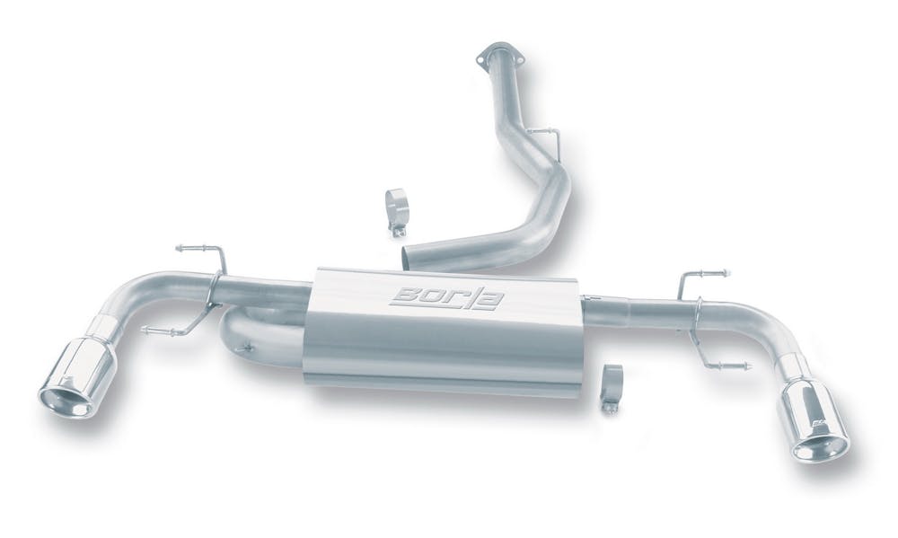 The BORLA(R) sound of power. Its been described as asonic shot of adrenaline. An intoxicating concert ofsteel, gears and combustion that echoes from thespeedways, deserts and highways of the world.The sound of more victory laps than any otherbrand, the BORLA(R) exhaust note has become the quintessentioal soundtrack of high-performance motoring. And like all good automotive designs there is function behing the form. As any driving enthusiast knows, the sound of an exhaust provides more than just ear candy. Its a communications conduit between car and driver. A link between human and machine. The exhaust sound provides accoustic feedback of engine rpm to aid the driver in critical decisions such as gear selection or throttle input in rev-match shifting. At BORLA(R), we understand this concept better than any exhaust manufacturer. Combining patented technology with computer modeling, extensive prototyping and advanced sound analysis tools. BORLA(R) engineers spend countless hours tuning exhaust systems to best reflect the personality and performance of vehicle applications. The result is an enhanced driving experience. With unrivaled clarity, the BORLA(R) exhaust note can help a driver stay within the powerband through a difficult section, using the exciting sensory feedback of sound. With unrivaled clarity the Borla exhaust note can help a driver stay within the powerband through a difficult section, using the exciting sensry feedback of sound.
