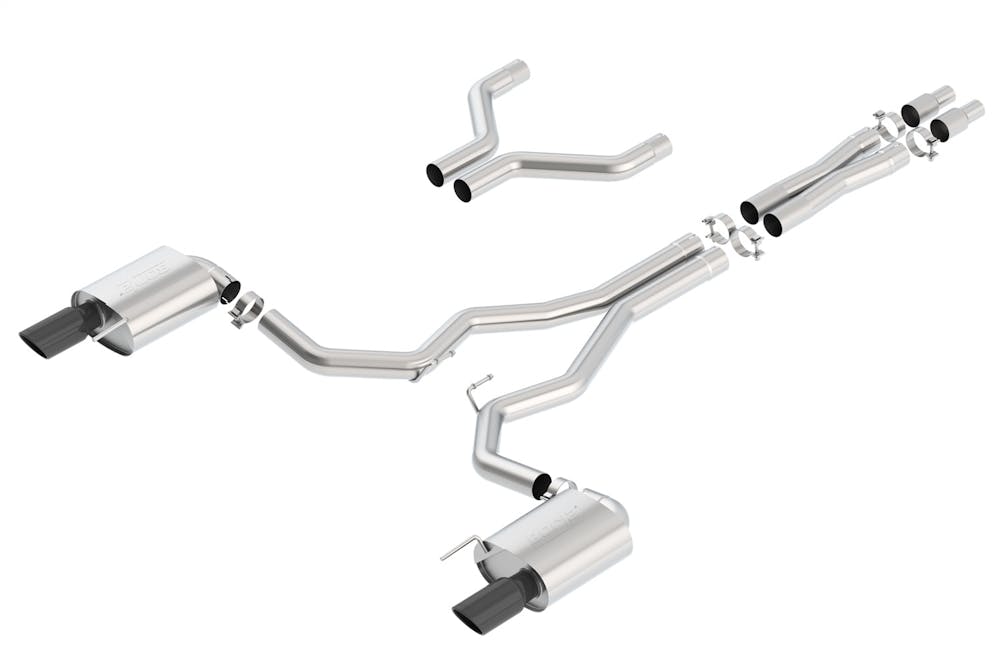 EXCEPT Convertible. Recommended only for vehicles with substantial engine upgrades that require a 3″ exhaust. System contains a merge X-Pipe for increased performance and improved sound. This system features a Black Chrome finish on the tips. Using BORLA(r) Stainless Steel Polish p# 21461 is not recommended with these black chrome tips. We suggest cleaning the tips with hot water and a microfiber cloth. BORLA(r) Cat-Back(tm) & Axle-Back exhaust systems feature patented straight-through and multi-core technology designed to unleash hidden horsepower. Increased exhaust velocity adds power, driving excitement, fuel economy, and the distinctive BORLA(r) Sound of Power respected by motoring enthusiasts everywhere. Each system is built from premium T-304 stainless steel, superior to T-400 series knockoffs (such as 409), to give you the absolute best in performance and durability. Ultra-smooth mandrel bends ensure maximum flow & power, and precision computer-controlled CNC manufacturing ensures an accurate fit. Best of all, BORLA(r) stands behind every system with a Million-Mile Warranty. Just what you’d expect from the world’s most experienced (and most winning) exhaust brand.