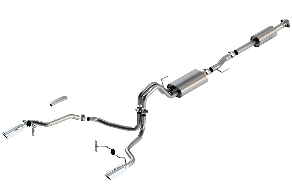 The Borla(r) Cat-Back(tm) system 140878 was specifically designed to enhance the power and sound of the Ford F-150 equipped with 3.3L engine. It includes bright chromed T-304 stainless steel tips and a split rear exit configuration. The entire system is made of T-304 stainless steel and utilizes computer numerical control (CNC) manufacturing techniques that ensure an accurate fit. This system features the S-Type sound level that gives you an aggressive sound level with no drone. It is also available with black chromed tips (part number 140878BC). There are also systems available for the 3.3L F-150 that offer different options for sound level, tip finish and tip exits. Add adapter 60556 for Crew Cab Standard Bed (157.2) Wheelbase Vehicles Add adapter 60564 for Extended Cab Long Bed (164.1) wheelbase vehicles. All this is backed by our unsurpassed Million Mile Warranty., System Features:, Cat-Back(tm) System, Split Rear Exit, Bright Chrome On T-304 Stainless Steel Tips, S-Type Sound Level, T-304 Stainless Steel Construction, Bolt-On Installation, Million Mile Warranty
