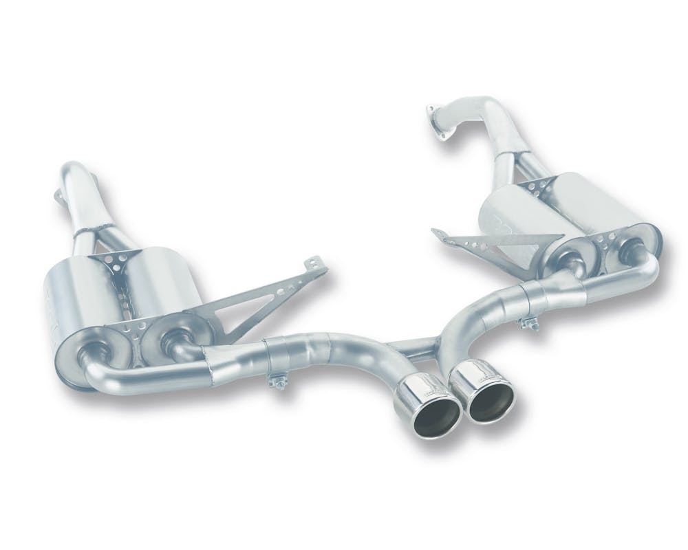 The BORLA(R) sound of power. Its been described as asonic shot of adrenaline. An intoxicating concert ofsteel, gears and combustion that echoes from thespeedways, deserts and highways of the world.The sound of more victory laps than any otherbrand, the BORLA(R) exhaust note has become the quintessentioal soundtrack of high-performance motoring. And like all good automotive designs there is function behing the form. As any driving enthusiast knows, the sound of an exhaust provides more than just ear candy. Its a communications conduit between car and driver. A link between human and machine. The exhaust sound provides accoustic feedback of engine rpm to aid the driver in critical decisions such as gear selection or throttle input in rev-match shifting. At BORLA(R), we understand this concept better than any exhaust manufacturer. Combining patented technology with computer modeling, extensive prototyping and advanced sound analysis tools. BORLA(R) engineers spend countless hours tuning exhaust systems to best reflect the personality and performance of vehicle applications. The result is an enhanced driving experience. With unrivaled clarity, the BORLA(R) exhaust note can help a driver stay within the powerband through a difficult section, using the exciting sensory feedback of sound. With unrivaled clarity the Borla exhaust note can help a driver stay within the powerband through a difficult section, using the exciting sensry feedback of sound.