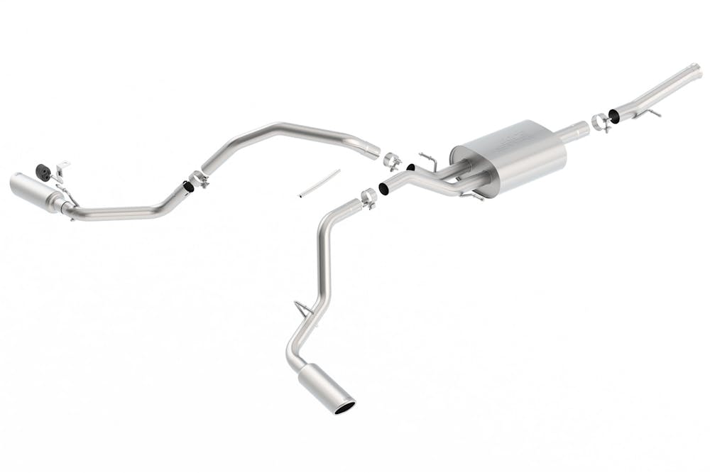 This system features bright chrome on T-304 stainless steel tips. Borla Cat-Back & Axle-Back exhaust systems feature patented straight-through and multi-core technology designed to unleash hidden horsepower. Increased exhaust velocity adds power, driving excitement, fuel economy, and the distinctive Borla Sound of Power respected by motoring enthusiasts everywhere. Each system is built from premium T-304 stainless steel, superior to T-400 series knockoffs (such as 409), to give you the absolute best in performance and durability. Ultra-smooth mandrel bends ensure maximum flow & power, and precision computer-controlled CNC manufacturing ensures an accurate fit. Best of all, Borla stands behind every system with a Million-Mile Warranty. Just what you?d expect from the world?s most experienced (and most winning) exhaust brand.