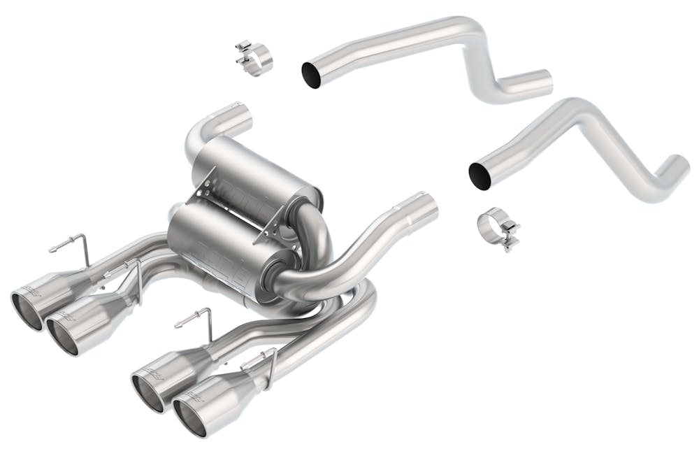 S-Type Classic sound. This system will fit vehicles with and without NPP. Borla system does NOT include NPP valves. Features polished T-304 stainless steel tips. Borla Performance has once again proven why we have led the aftermarket performance exhaust industry for over 40 years. Borla has an exalted heritage with Chevrolet performance vehicles. From the C5R Le Mans winning Corvettes to privateers like KTEC, Pratt-Miller, Lingenfelter and Lou Gigliotti who have enhanced Borla?s knowledge of both the vehicle dynamics and the power-plant engineering. The C6 is a muscle car with a big powerful engine on a sophisticated, sexy chassis. Borla has always used the transfer of technology from racing to the street as a tool, and the C6 and C6 Z06 play right into that wheelhouse. With an experienced R&D staff, the Borla team has given the C6 the attention it deserves by rolling out several systems for the Corvette. Airflow management and exhaust engineering is a science with which Borla has more experience than anyone in the exhaust aftermarket. Borla offers a variety of options for the C6, and C6 Z06. Choose from several tip styles and muffler designs. Cat-Back? and Axle-Backs are available with either the highly popular ?S-Type? muffler or the ?Touring? muffler. The ?S-Type? has a more aggressive sound. For those who prefer it on the milder side, we have the ?Touring? muffler with a less aggressive sound. Some come with an assortment of tip designs. Borla Performance Industries, the original pioneers of premium, high-quality T-304 austenitic stainless steel (superior to 409 or aluminized steel) free-flow exhaust utilizes patented award and race winning technology to deliver quality, sound, performance gains and enhanced fuel economy ? all with an easy bolt-on installation. All Borla street products carry an unsurpassed written Million-Mile warranty.
