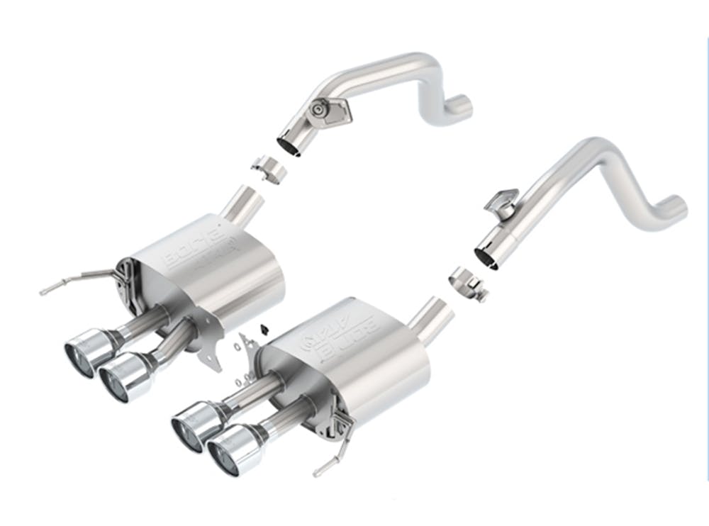 This system does NOT include AFM or NPP valves. It is intended for vehicles that are either not equipped with AFM and NPP or has AFM and NPP disabled. System has non-functioning mounts where AFM actuators can be mounted if the vehicle had them. A Check Engine Light will occur on vehicles equipped with AFM. System features polished T-304 stainless steel tips. Borla Cat-Back & Axle-Back exhaust systems feature patented straight-through and multi-core technology to unleash hidden horsepower. Increased exhaust velocity adds power, driving excitement, fuel economy, and the distinctive Borla Sound of Power respected by motoring enthusiasts everywhere. Each system is built from premium T-304 austenitic stainless steel, superior to T-400 series knockoffs (such as 409), to give you the absolute best in performance and durability. Ultra-smooth mandrel bends ensure maximum flow & power, and precision computer-controlled CNC manufacturing ensures an accurate fit. Borla’S C7 Corvette Axle-Back exhaust systems are covered under our Million-Mile Warranty for non-moving parts, the exhaust valves are warrantied for 3 years. Failures of original equipment AFM and NPP actuators are not covered by the Borla warranty