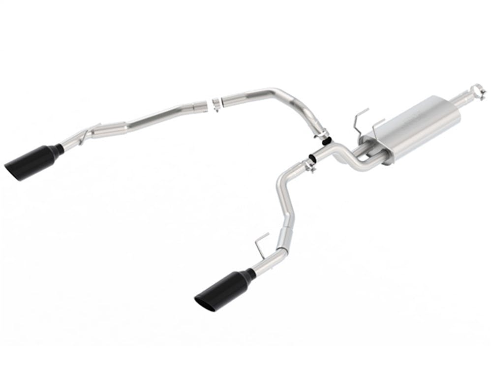 Fits through the factory bumper cut-outs (bumper has notches on the bottom). This system features a Black Chrome finish on T-304 stainless steel tips. Using BORLA(r) Stainless Steel Polish p# 21461 is NOT recommended with these black chrome tips. We suggest cleaning the tips with hot water and a microfiber cloth. BORLA(r) Cat-Back(tm) & Axle-Back exhaust systems feature patented straight-through and multi-core technology to unleash hidden horsepower. Increased exhaust velocity adds power, driving excitement, fuel economy, and the distinctive BORLA(r) Sound of Power respected by motoring enthusiasts everywhere. Each system is built from premium, high-quality T-304 austenitic stainless steel, superior to T-400 series knockoffs (such as 409), to give you the absolute best in performance and durability. Ultra-smooth mandrel bends ensure maximum flow & power, and precision computer numerical control (CNC) manufacturing ensures an accurate fit. Best of all, BORLA(r) stands behind every system with a Million-Mile Warranty. Just what you’d expect from the world’s most experienced (and most winning) exhaust brand.