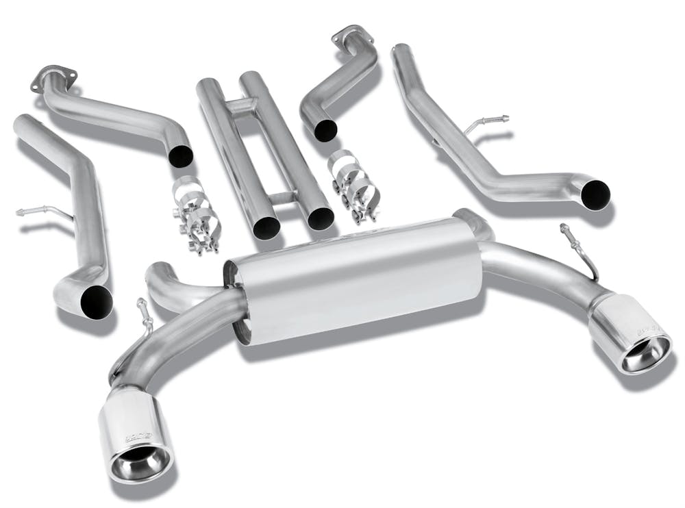 Except NISMO models. System features a H-Pipe for increased performance and improved sound, and mirror polished T-304 stainless steel tips for sharp appearance. Borla Cat-Back & Axle-Back exhaust systems feature patented straight-through and multi-core technology designed to unleash hidden horsepower. Increased exhaust velocity adds power, driving excitement, fuel economy, and the distinctive Borla Sound of Power respected by motoring enthusiasts everywhere. Each system is built from premium T-304 stainless steel, superior to T-400 series knockoffs (such as 409), to give you the absolute best in performance and durability. Ultra-smooth mandrel bends ensure maximum flow & power, and precision computer-controlled CNC manufacturing ensures an accurate fit. Best of all, Borla stands behind every system with a Million-Mile Warranty. Just what you?d expect from the world?s most experienced (and most winning) exhaust brand.