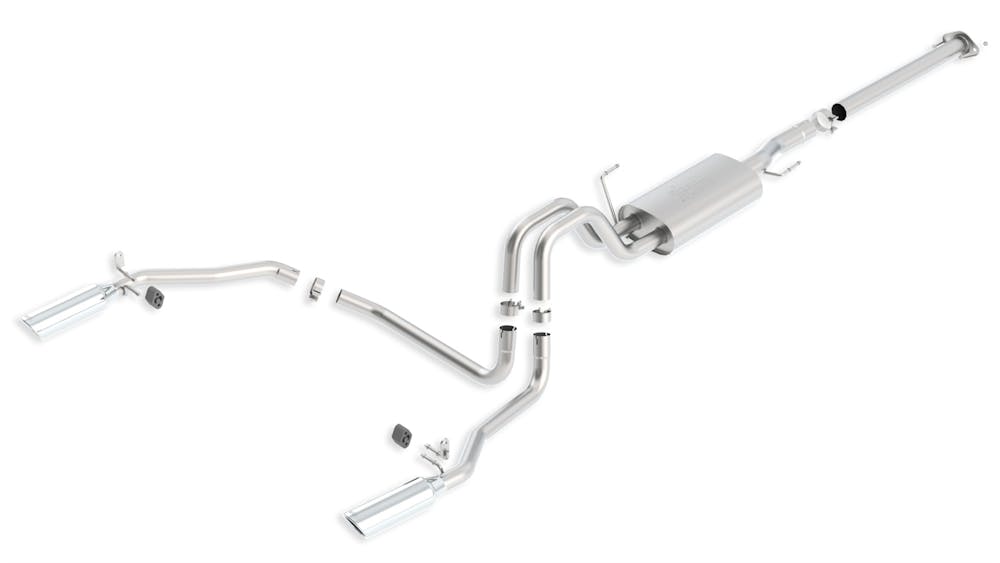 Features bright chrome on T-304 stainless steel tips. System can also be used on Crew Cab Standard Bed (78.8) vehicles but requires 60554 Adapter. Borla Cat-Back & Axle-Back multi-core technology is designed to unleash hidden horsepower. Increased exhaust velocity adds power, driving excitement, fuel economy, and the distinctive Borla Sound of Power respected by motoring enthusiasts everywhere. Each system is built from premium T-304 stainless steel, superior to T-400 series knockoffs (such as 409), to give you the absolute best in performance and durability. Ultra-smooth mandrel bends ensure maximum flow & power, and precision computer-controlled CNC manufacturing ensures an accurate fit. Best of all, Borla stands behind every system with a Million-Mile Warranty. Just what you?d expect from the world?s most experienced (and most winning) exhaust brand.