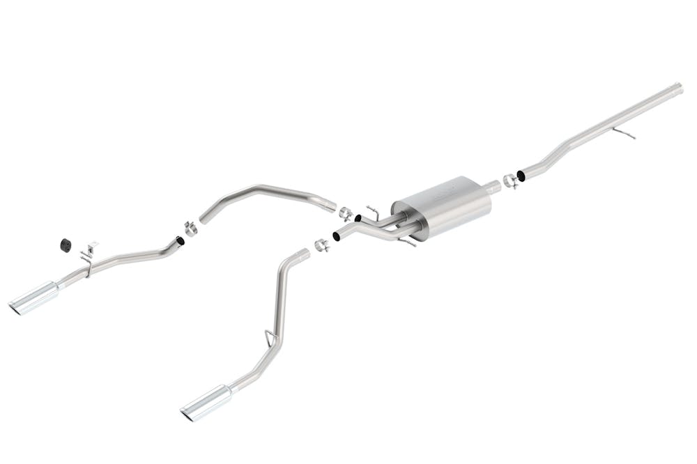Features bright chrome on T-304 stainless steel tips. Borla Cat-Back & Axle-Back exhaust systems feature patented straight-through and multi-core technology designed to unleash hidden horsepower. Increased exhaust velocity adds power, driving excitement, fuel economy, and the distinctive Borla Sound of Power respected by motoring enthusiasts everywhere. Each system is built from premium T-304 stainless steel, superior to T-400 series knockoffs (such as 409), to give you the absolute best in performance and durability. Ultra-smooth mandrel bends ensure maximum flow & power, and precision computer-controlled CNC manufacturing ensures an accurate fit. Best of all, Borla stands behind every system with a Million-Mile Warranty. Just what you?d expect from the world?s most experienced (and most winning) exhaust brand.