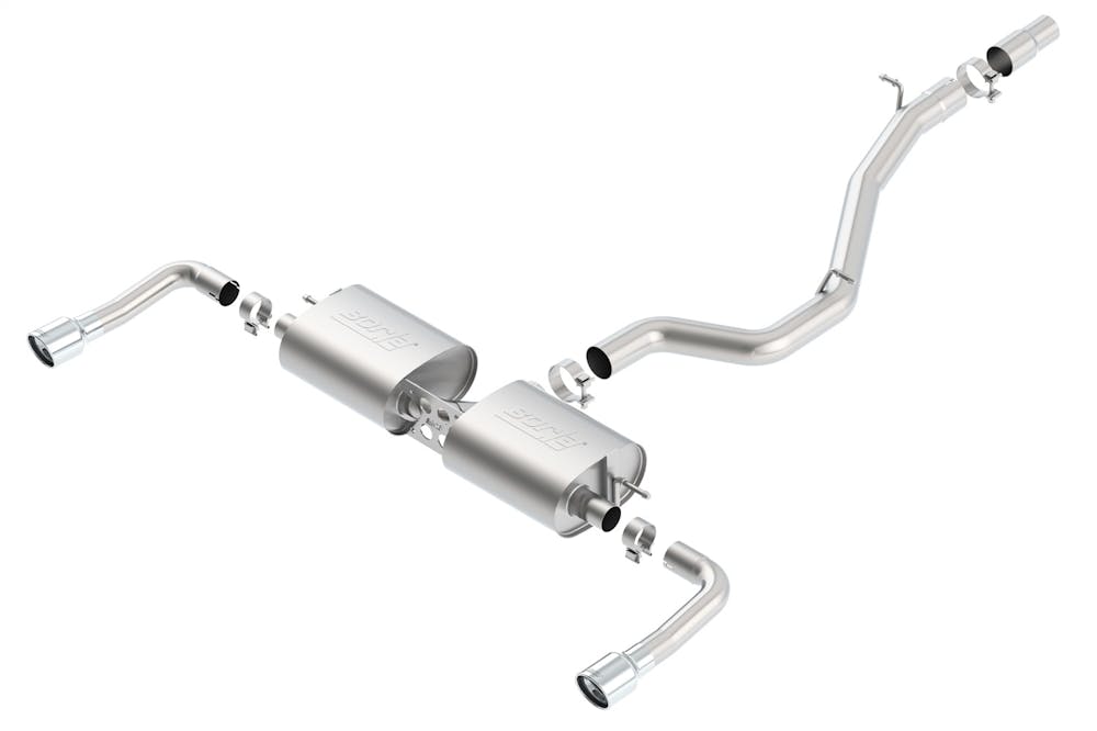 System features polished T-304 stainless steel tips. BORLA(r) Cat-Back(tm) & Axle-Back exhaust systems feature patented straight-through and multi-core technology designed to unleash hidden horsepower. Increased exhaust velocity adds power, driving excitement, fuel economy, and the distinctive BORLA(r) Sound of Power respected by motoring enthusiasts everywhere. Each system is built from premium T-304 stainless steel, superior to T-400 series knockoffs (such as 409), to give you the absolute best in performance and durability. Ultra-smooth mandrel bends ensure maximum flow & power, and precision computer-controlled CNC manufacturing ensures an accurate fit. Best of all, BORLA(r) stands behind every system with a Million-Mile Warranty. Just what you’d expect from the world’s most experienced (and most winning) exhaust brand.