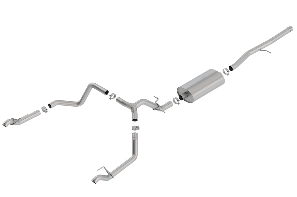 Factory Split Rear Exit vehicles ONLY. Tips NOT included. Use factory tips. Add Adapter 60708 for Crew Cab with Standard Bed (6′ 7″) 157″ Wheelbase vehicles. BORLA(r) Cat-Back(tm) and Axle-Back exhaust systems feature patented straight-through and multi-core technology designed to unleash hidden horsepower. Increased exhaust velocity adds power, driving excitement, fuel economy, and the distinctive BORLA(r) Sound of Power respected by motoring enthusiasts everywhere. Each system is built from premium T-304 stainless steel, superior to T-400 series knockoffs (such as 409), to give you the absolute best in performance and durability. Ultra-smooth mandrel bends ensure maximum flow& power, and precision computer numerical control (CNC) manufacturing ensures an accurate fit. Best of all, BORLA(r) stands behind every system with a Million-Mile Warranty. Just what you’d expect from the world’s most experienced (and most winning) exhaust brand.