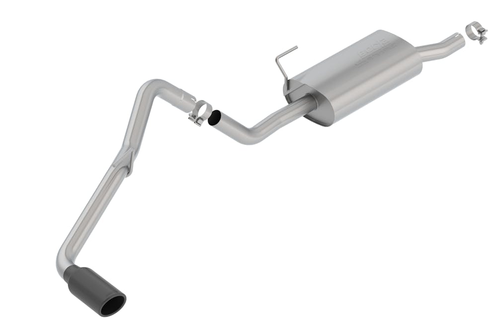 The Borla team has developed an awesome sounding exhaust system for the 2005-2019 Nissan Frontier. The Cat-Back system comes in the S-Type sound level and is specifically tuned for performance and sound on the Frontier?s 4.0L V6 engine. Much like the stock exhaust, the Borla system features a passenger-side single exit. Its cut-and-clamp installation ensures that the system retains the factory catalytic converters and allows the system to fit both wheelbases available in the Frontier. This particular system (140802BC) comes with a black chrome on T-304 stainless steel tip, but is also available in bright chrome on T-304 stainless steel (140802). Using Borla Stainless Steel Polish p# 21461 is NOT recommended with these black chrome tips. We suggest cleaning the tips with hot water and a microfiber cloth. As one would expect, the system is drone-free and constructed using T-304 stainless steel for increased durability. Bolt on a Borla and hear the Frontier roar! Borla exhaust systems are covered under our Million-Mile warranty with the following exceptions. Borla will warranty black coatings, tip finishes, and carbon fiber parts for one year.