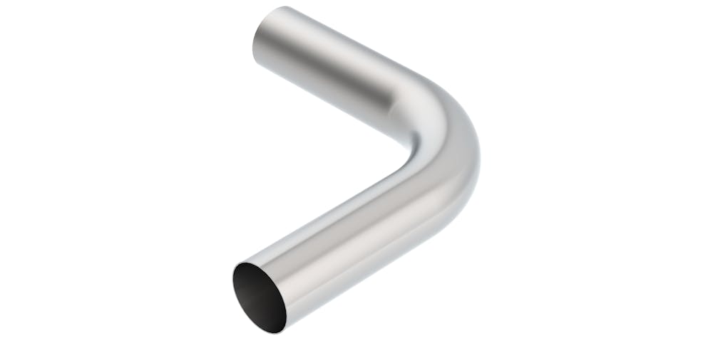 90-degree elbow with 5 bend radius and 8 legs. Heavy 18-gauge high-qualityT-304 austenitic stainless steel. Mandrel bent for consistent diameter throughout the bend area for maximum flow. Natural mill finish can be brushed or polished prior to installation. Size is outside diameter.