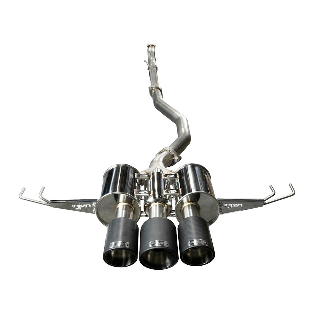 The SES1583CF is everything you could ask for from a performance exhaust system. From the Investment Cast Flanges to the Triple Carbon Fiber Exhaust Tips, this kit is designed for peak performance while maintaining a powerful tone and sensible volume control. The massive Mandrel-Bent 76mm 304 Stainless Steel Piping allows your engine to breathe freely, unbridling every ounce of potential this truly capable platform can produce. Our triple canister muffler design allows the powerful primary exhaust note to shine through while removing unwanted rasp and turbulence. While our muffler design provides a substantial increase to operating volume, it is designed to keep exhaust drone to a minimum. We have put countless hours into delivering the perfect blend of performance and sound when you need it, without creating an uncomfortable cabin environment during your commute. Here at Injen, there is no sacrificing build quality. Each and every component included with this kit has been tried, tested, and proven over decades of refinement. The SES1583CF utilizes Investment Cast Flanges to provide an incredibly precise fit and finish, not to mention the simplest installation process available. Hand crafted with only the finest materials, this kit utilizes 304 Stainless Steel tubing, hangers, and flanges. If the tone alone doesn’t garner enough attention, the detachable rear hangers include a laser cut Injen logo that’s sure to impress anyone that takes the time to look at what lies beneath. Not to mention, all of Injen’s Exhaust Systems are 100% hand-crafted in Pomona, CA with the highest level of precision possible. Designed to fit into factory mounting locations, no cutting or drilling required. The three piece design makes installation a breeze and the industry leading Injen Technology Limited Lifetime Warranty ensures that the tone you love will last for years to come.
