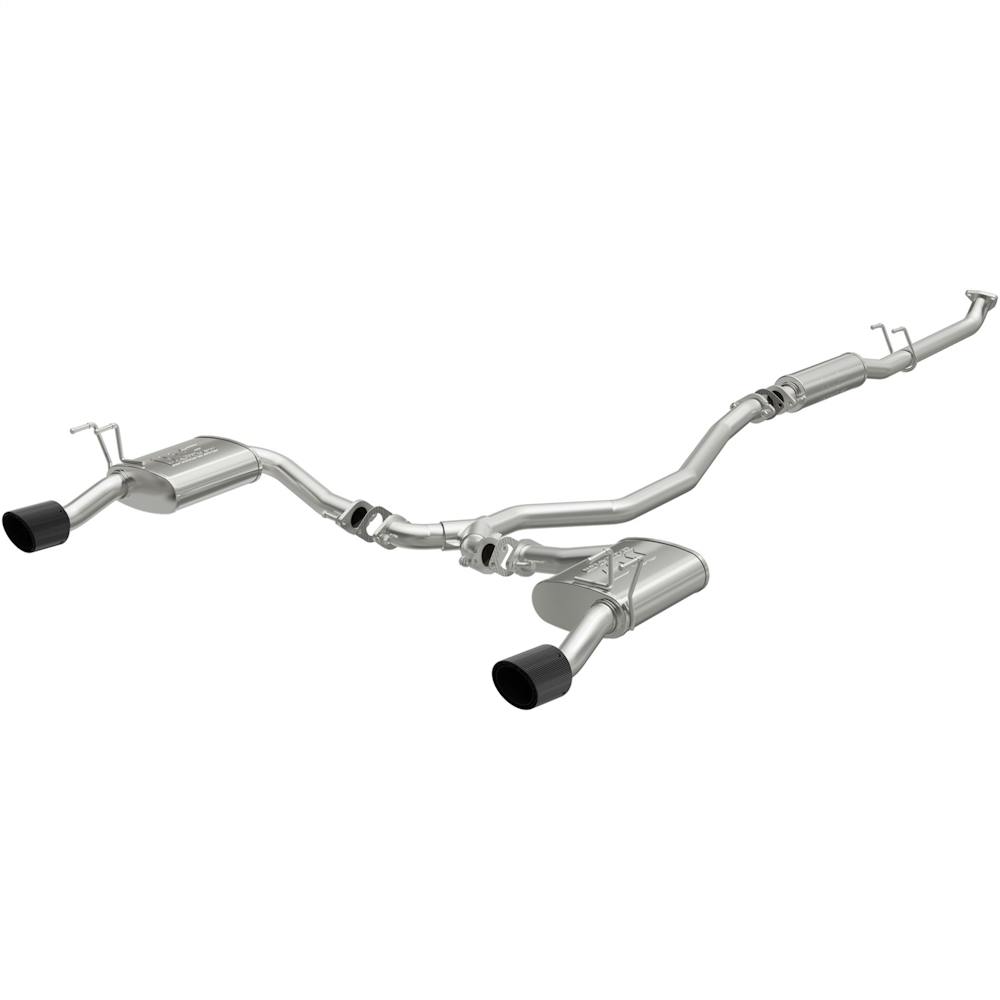 The MagnaFlow Honda Civic NEO Series Cat-Back Performance Exhaust System # 19612 upgrades your 2022-2023 Honda Civic EX or Touring’s 1.5L engine with dyno-proven performance and the latest version of our signature exhaust sound. This performance exhaust kit is designed to replace all your Civic’s OEM exhaust components from near the catalytic converter on back and utilizes an easy to install direct-fit design with all connections flanged. #19612 features 2.25” diameter mandrel bent main piping that passes through a 14” round straight-through performance muffler and two 11” straight-through oval performance mufflers before ending in a dual split rear exit with 4” double-wall angle cut dry carbon fiber tips. Each of these Honda Civic performance exhaust systems is produced using advanced CNC precision robotic manufacturing techniques and made of durable, corrosion resistant stainless steel, all backed by MagnaFlow’s limited lifetime warranty.