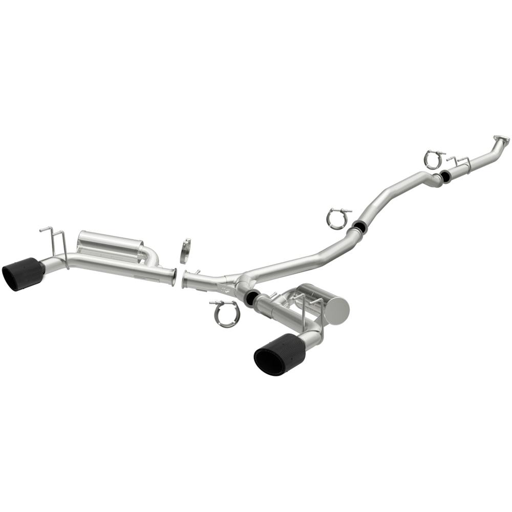 The MagnaFlow NEO Series Cat-back Acura Integra/Honda Civic Si Performance Exhaust System #19600 is engineered to enhance the sound and performance of your sporty compact’s 1.5L I4 engine with improved airflow and a fresh take on MagnaFlow’s signature exhaust sound. Passersby and passengers in your 2023 Acura Integra or 2022-2023 Honda Civic Si will know that more than just the VTEC kicked in when your right foot sends your car’s four-banger barreling towards its redline with a ferocity that the stock Civic Si and Integra simply can’t match. Improved exhaust flow is made possible thanks to the system’s 2.5” mandrel bent main tubing with dual 4”x 4” x 11” NDT (No Drone Technology) resonators, terminating in a dual split rear exit with 4.5” carbon fiber tips. Exhaust kit #19600’s integration of MagnaFlow’s No Drone Technology ensures that unwanted droning noises are kept in check at cruising speeds while allowing you to enjoy all the other epic engine sounds your NEO Series system makes possible. #19600’s easy-to-install, direct-fit bolt-on design replaces all major exhaust components from near the catalytic converter on back and is made entirely of durable, corrosion resistant stainless steel (except the carbon fiber tips), all covered by MagnaFlow’s limited lifetime construction warranty.